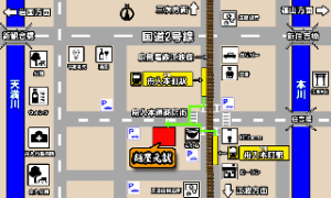 「舟入本町駅」下車し交番を背に舟入本通商店街に入り左手方向すぐ(徒歩約1分)【「舟入本町駅」は広島駅から15番目の駅になります】